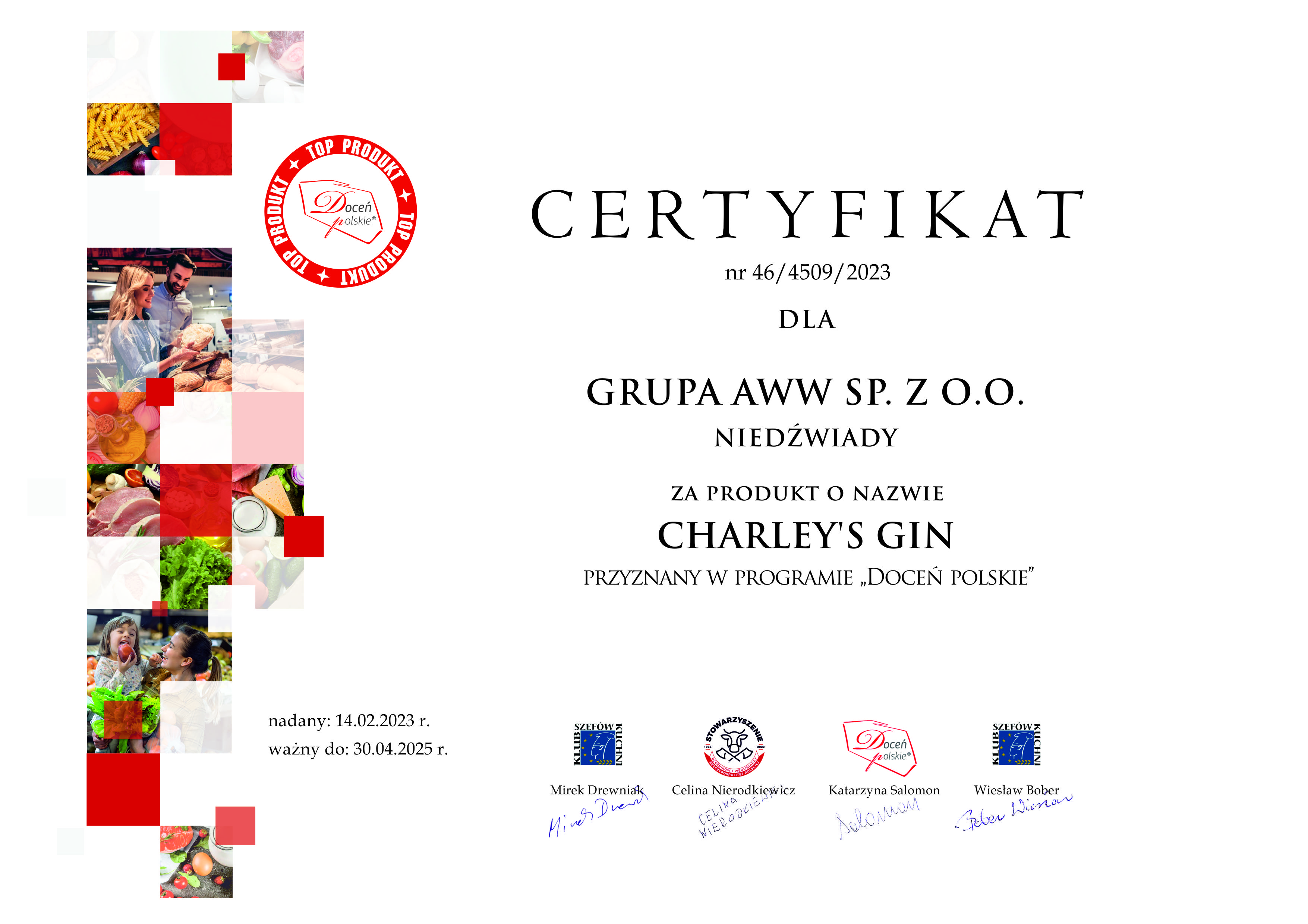 Gin Charley's – po raz kolejny z godłem „Doceń polskie”!