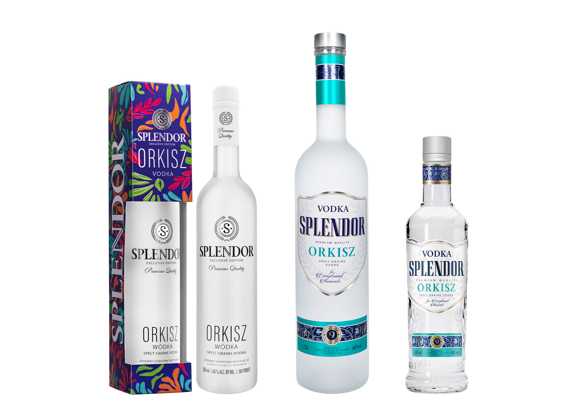 Wyjątkowa jakość i smak to efekt połączenia najwyższej jakości spirytusu poddanego procesowi wielokrotnej filtracji oraz wody źródlanej. Do produkcji spirytusu użyto orkiszu – najstarszego uprawnego zboża na świecie, bogatego w białko i minerały, którego wartości odżywcze i zdrowotne są znane od pokoleń, a jego uprawę kultywuje się w wyspecjalizowanych gospodarstwach. Splendor Orkisz poddano filtracji węglowo-platynowej.