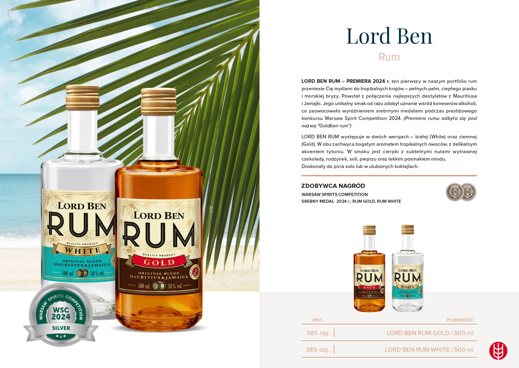 SREBRNY MEDAL dla Lord Ben Rum Gold